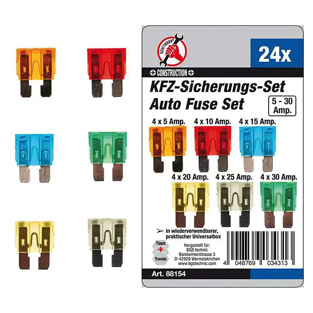 - Sikringer – 5A (lys brun), 10A (rød), 15A (blå), 20A (gul), 25A (klar), 30A (grønn)