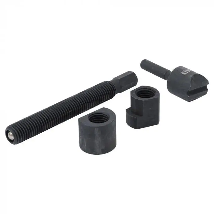 - Leveringsomfanget inkluderer en spindel med indre lag, et trykkstykke for den indre felgen, en stor trekkrok for den ytre kanten og en liten trekkrok for den ytre kanten.