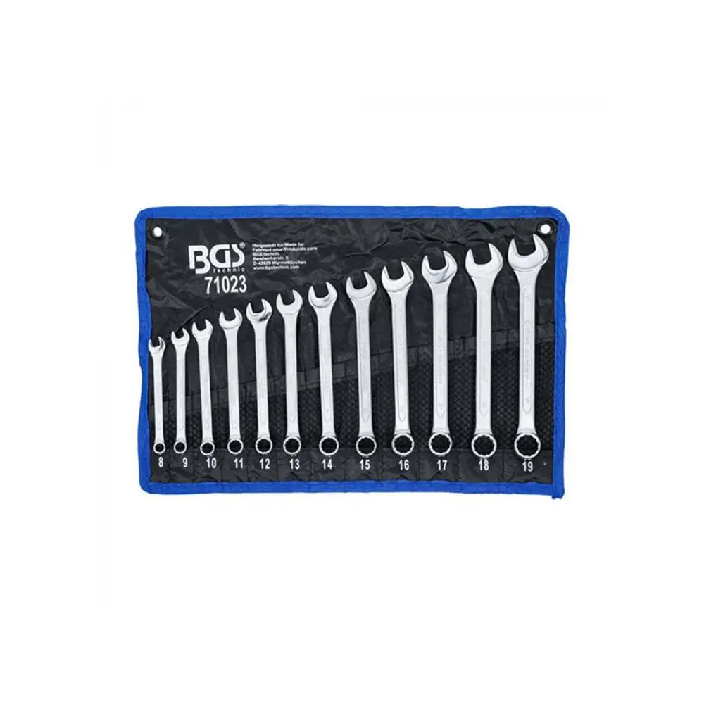 - Det åpne ringnøkkelsettet består av 12 faste ringnøkler med forskjellige skiftenøkkelstørrelser: SW 8 mm, SW 9 mm, SW 10 mm, SW 11 mm, SW 12 mm, SW 13 mm, SW 14 mm, SW 15 mm, SW 16 mm, SW 17 mm, SW 18 mm og SW 19 mm.
