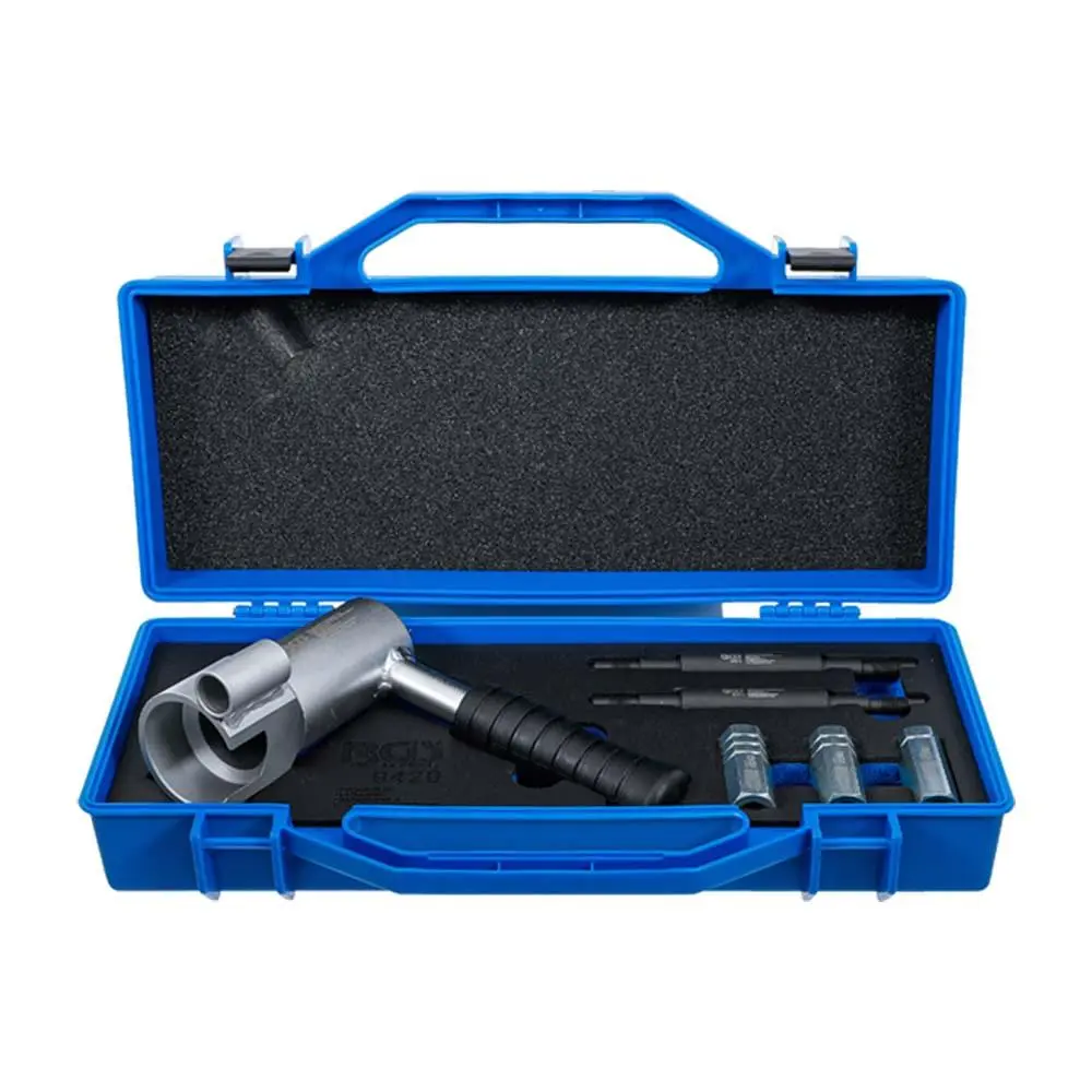 - Kuleleddverktøysettet muliggjør montering og demontering av kuleleddene i den nedre kontrollarmen (kuleleddene).