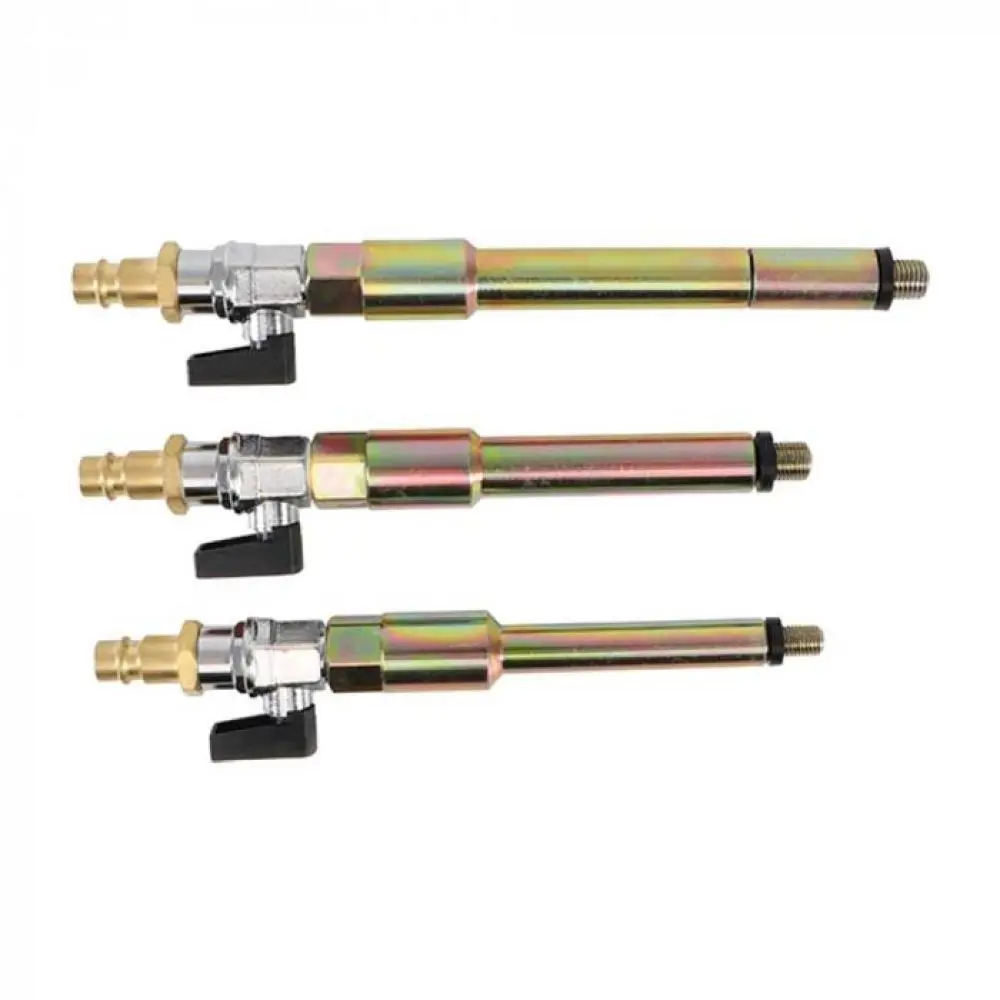 - Trykkluftadaptersettet for glødeplugghull inneholder følgende adapterstørrelser: M8 x 1.0 for Citroën, Fiat, Ford, Lancia, Opel, Mercedes-Benz, Suzuki og Volvo, M10 x 1.0 for BMW, Chrysler, Opel, Mercedes-Benz , Nissan og Renault og M10 x 1,25 for Toyota og Lexus