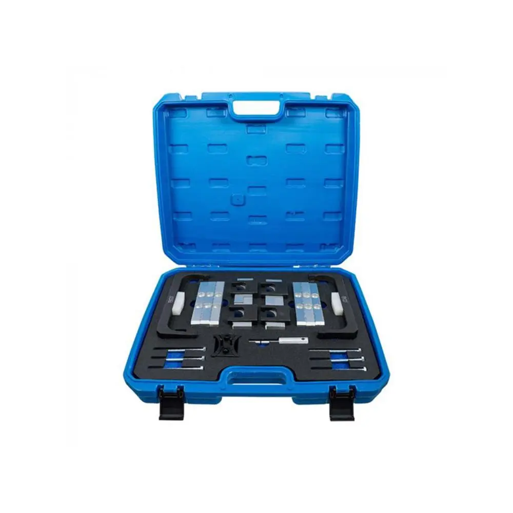 - Verktøysettet for motortiming inkluderer følgende deler: verktøy for lagring av timingkjede, verktøy for kamakselholder, verktøy for kamakselinnretting, verktøy for kamakselfaseholder, timingstift for veivaksel og monteringsbolter.